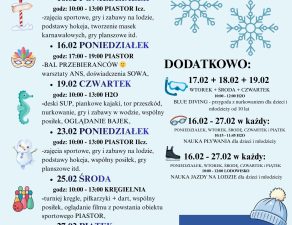 Plan na drugi tydzień ferii zimowych wygląda następująco: