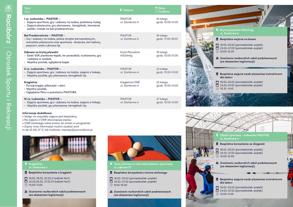 Zapisy i informacje: imprezy@osirraciborz.pl sport@osirraciborz.pl