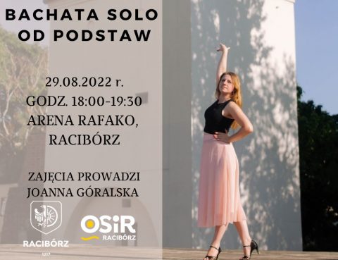 Poznaj z nami Bachatę. Zapraszamy na darmową lekcję pokazową 29 sierpnia 2022 r. na Hali widowiskowo — sportowej, ul. Łąkowa 31. Zajęcia poprowadzi instruktorka Joanna Góralska. Na zajęcia obowiązują zapisy. W załączniku znajdą Państwo regulamin, z którym należy się zapoznać w celu chęci uczestnictwa w zajęciach tanecznych. Foto Agata Łyżwa. Pobierz regulamin