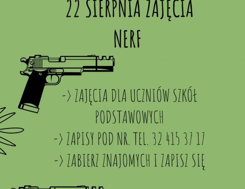 Wszystkie dzieci uczęszczające do szkół podstawowych są mile widziane na naszych zajęciach NERF. Zajęcia odbędą się 22 sierpnia (poniedziałek) i w zależności od ilości chętnych rozpoczniemy je od godz. 10:30. Wystarczy, że chętni zgłoszą się pod numer 32 415 37 17 bądź mailowo: imprezy@osirraciborz.pl, i tylko tyle wystarczy, żeby być częścią tego interesującego poniedziałku. Zajęcia odbywają się…